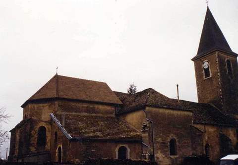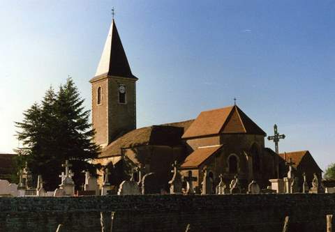 L’église paroissiale de Nanton, dédiée à saint Vincent, se trouve, de façon assez inhabituelle, située à l’écart du bourg : sa silhouette massive se dresse au milieu des champs de la large vallée du Grigou, au lieu-dit La Guiche. Cette anomalie s’explique par le fait que c’est la chapelle du château de Nanton qui tenait lieu, à l’origine, d’église paroissiale. L’église Saint-Laurent est mentionnée dès le xiie s., mais l’édifice actuel date de l’époque gothique et constitue l’un des rares témoignages de ce style architectural dans la région. Elle est construite sur un plan en croix latine, avec un chœur surhaussé terminé par une abside polygonale. Ce chœur contient de très belles boiseries du xviiie s et un mobilier de qualité. Le clocher qui s’élève sur la première travée de la nef est une reconstruction du début du xixe s.La toiture du transept et de la nef était en très mauvais état, et les infiltrations avaient causé de graves dégâts aux voûtes de pierre et aux boiseries. Pour sa réfection, le maintien des couvertures en laves était important, la vallée étant autrefois un des principaux lieux d’extraction de ce matériau dans la région. La Sauvegarde de l’Art français a versé une subvention de 40 000 F en 1988.