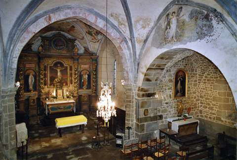 Pour augmenter un peu les capacités d’accueil, une petite tribune a été montée à l’époque moderne contre le revers de la façade. Le chœur est éclairé au sud par une baie agrandie au XVIIe siècle. La grande baie étroite et haute qui l’éclairait à l’est a été obturée lors de l’installation du retable. Elle reste visible à l’extérieur dans l’axe du chevet plat.
