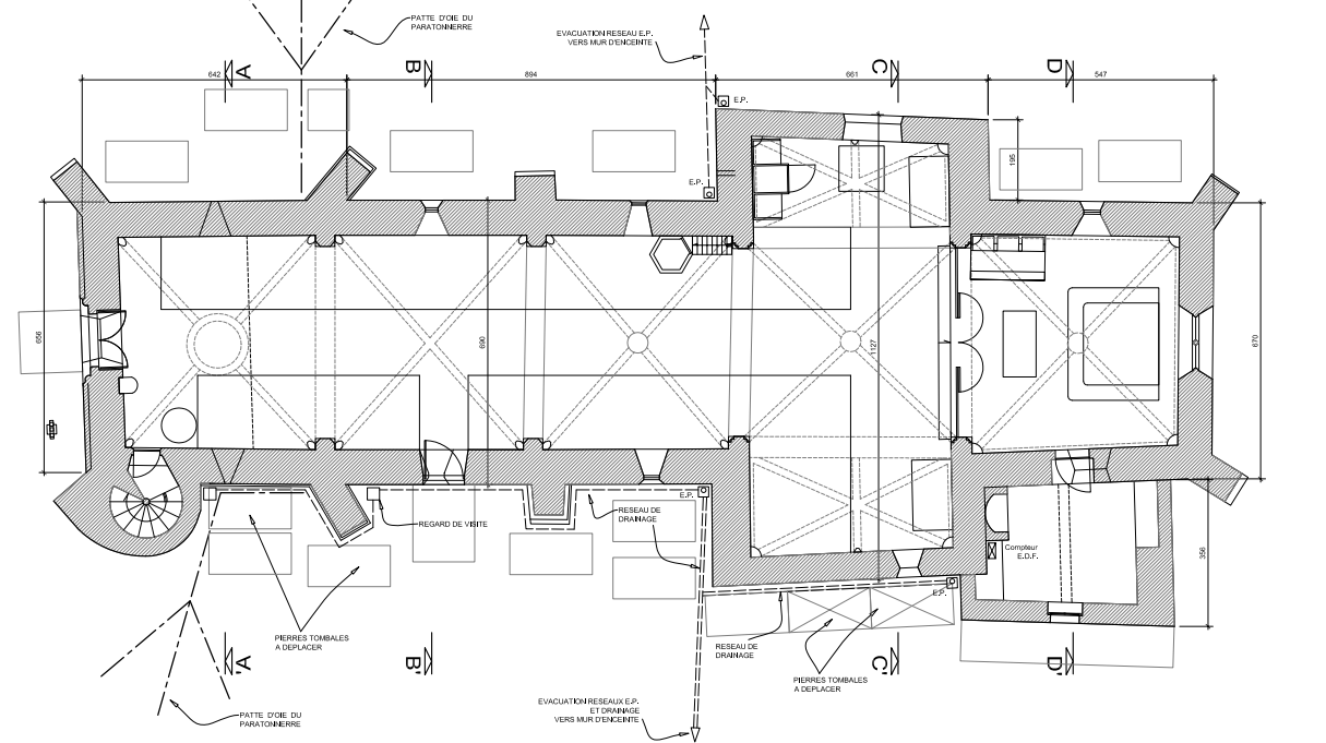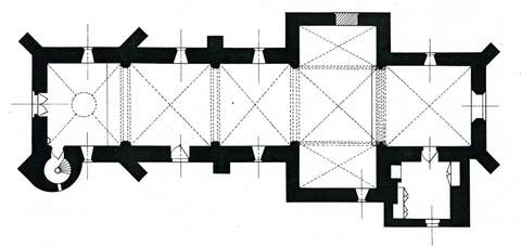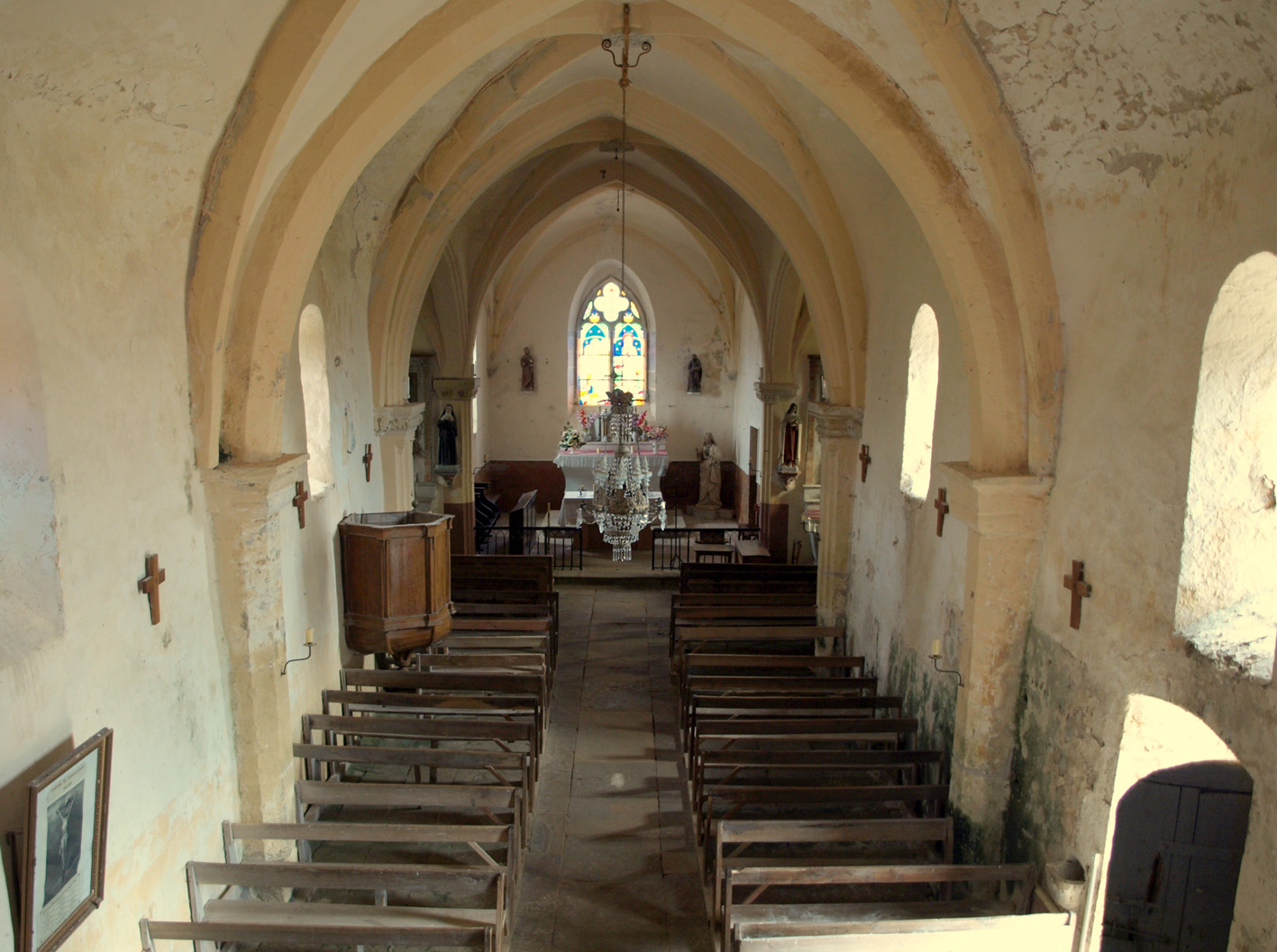C’est un petit édifice au plan très simple en croix latine, parfaitement orienté, formé d’un clocher-porche massif cantonné d’une tourelle d’escalier, d’une nef unique de deux travées, d’un transept et d’une travée carrée de chœur.