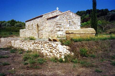 La chapelle dédiée à saint Christol, le patron des voyageurs, est encore signalée au XVIIe s. sur une carte de Cassini, mais la construction actuelle n’est plus qu’une ruine. Cet édifice fort ancien fut construit sur l’emplacement d’un mausolée romain gui aurait été bâti près d’une villa romaine, à proximité d’une source. Ce mausolée, proche d’une voie antique et dont la situation a peut-être été à l’origine du vocable, fit place à une construction cultuelle au mo ment de l’implantation du christianisme vers le Ve s. Ce sont sans doute les guerres de religion gui ont contribué à sa destruction, entraînant son abandon. Des opérations de sauvetage menées par l’abbé Giry et des propriétaires locaux ont permis de faire émerger la chapelle d’amas de murs disloqués et envahis de végétation. Le plan qui a pu être retrouvé se compose d’une nef rectangulaire et unique de 10 m· de long sur 4,10 m de large, entourée de murs épais où s’adossaient trois banquettes de pierre. Le mur nord pour rait dater de l’époque romaine. Deux portes avaient été aménagées,