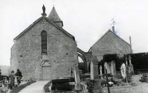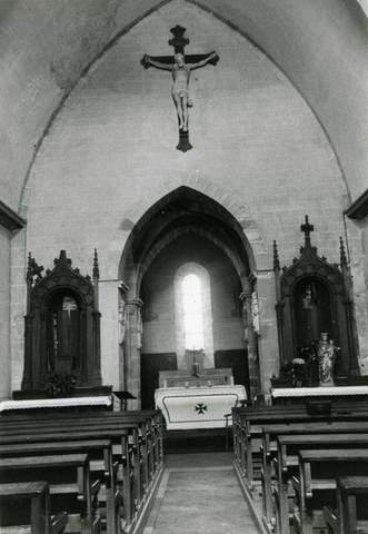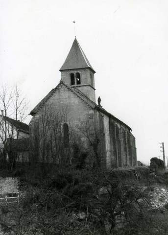 Église paroissiale au hameau de Nogent-le-Petit. Malgré la grande simplicité de son plan, cette église appelle plusieurs remarques. Construite au xiiie siècle, elle garde de cette grande époque un environnement typique avec un vaste cimetière pourvu d’une chapelle propre. Un petit clocher de plan carré s’élève à peu près à mi-distance de la façade et du chevet, ce qui donne au chœur une place presque prépondérante, appropriée à la présence de nombreux clercs. L’église cependant n’était pas priorale, mais seulement paroissiale. La porte d’entrée, située à l’Ouest, est surmontée d’un élégant tympan orné d’un trilobe. La toiture étant en très mauvais état, nous accordons une subvention de 50 000 F.