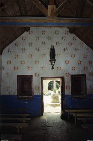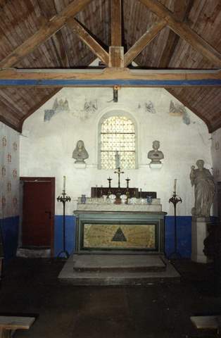 Le petit édifice, de plan rectangulaire (10 mètres sur sa longueur) est couvert d ‘une charpente lambrissée à deux fermes apparentes. Il est éclairé par deux fenêtres en plein cintre percées l’une dans le mur droit, l’autre dans le mur postérieur, et par les ouvertures de la façade. Des vestiges de peintures murales du XVIe s. encadrent la fenêtre du chevet. La chapelle est couverte d’un toit à deux versants débordant en auvent sur la façade principale et supporté par une sablière moulurée et deux consoles ornées d’écussons. La porte est surmontée d’un linteau en accolade et possède des piédroits moulurés. Elle est flanquée de deux baies à allèges saillant es. Le petit clocher avec cloche apparente est surmonté d’une flèche à bulbe et d’une charpente de bois à console.