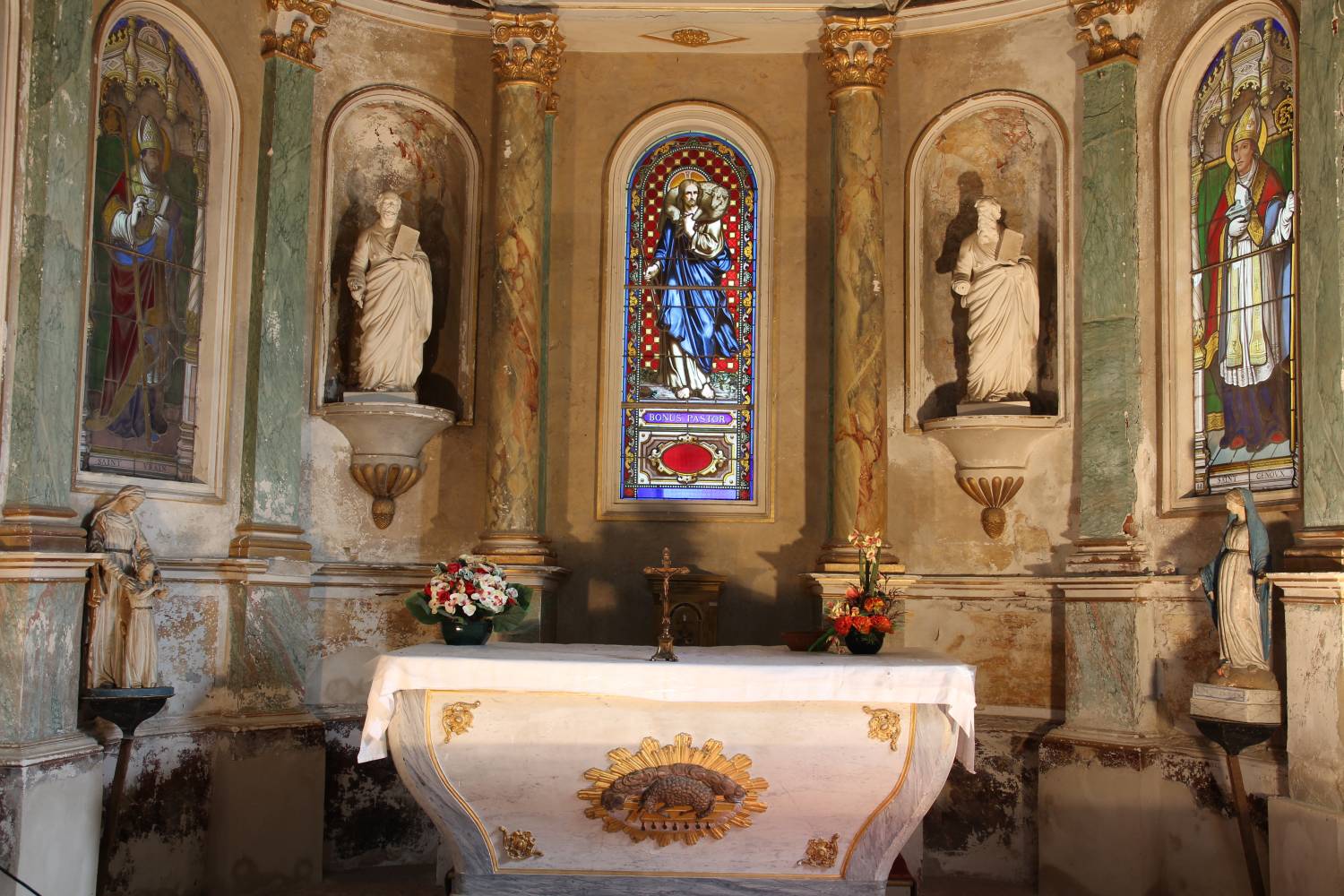 L’église suit un plan simple avec une nef unique terminée par une abside semi-circulaire.