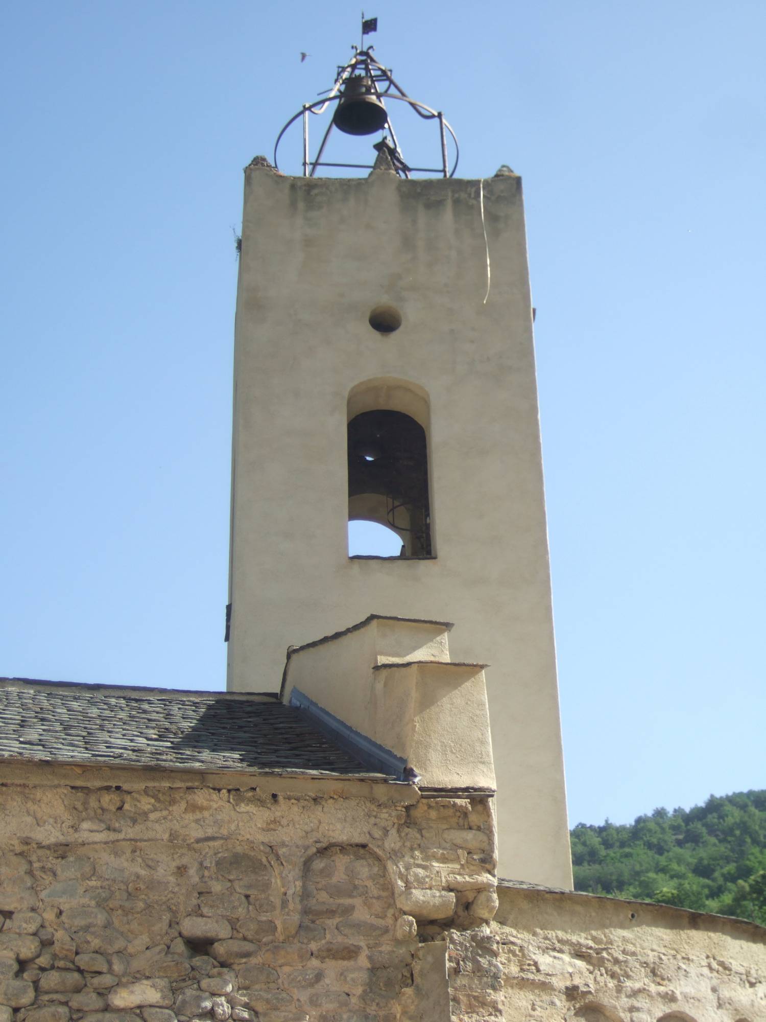 Son clocher tour est plus tardif, daté des alentours de 1855. En effet en juin 1848, le clocher en mauvais état, qui se trouvait sur la face sud, entre l’abside et le portail, s’écroule entraînant dans sa chute la sacristie qui était dessous, « toute la devanture du toit de l’église » et un mur du presbytère. Lors de sa visite en octobre 1848, l’architecte départemental note que « ce monument n’existe plus et il faut le reconstruire » et demande de déblayer le sol et empiler les matériaux qui peuvent servir à sa reconstruction. Les travaux de réparations seront effectués bien plus tard, et ce n’est qu’en 1858, que l’on a la preuve de la construction du nouveau clocher, lorsque le Conseil municipal vote à l’unanimité une somme de 10 francs pour le salaire de « celui qui soigne l’horloge« .
