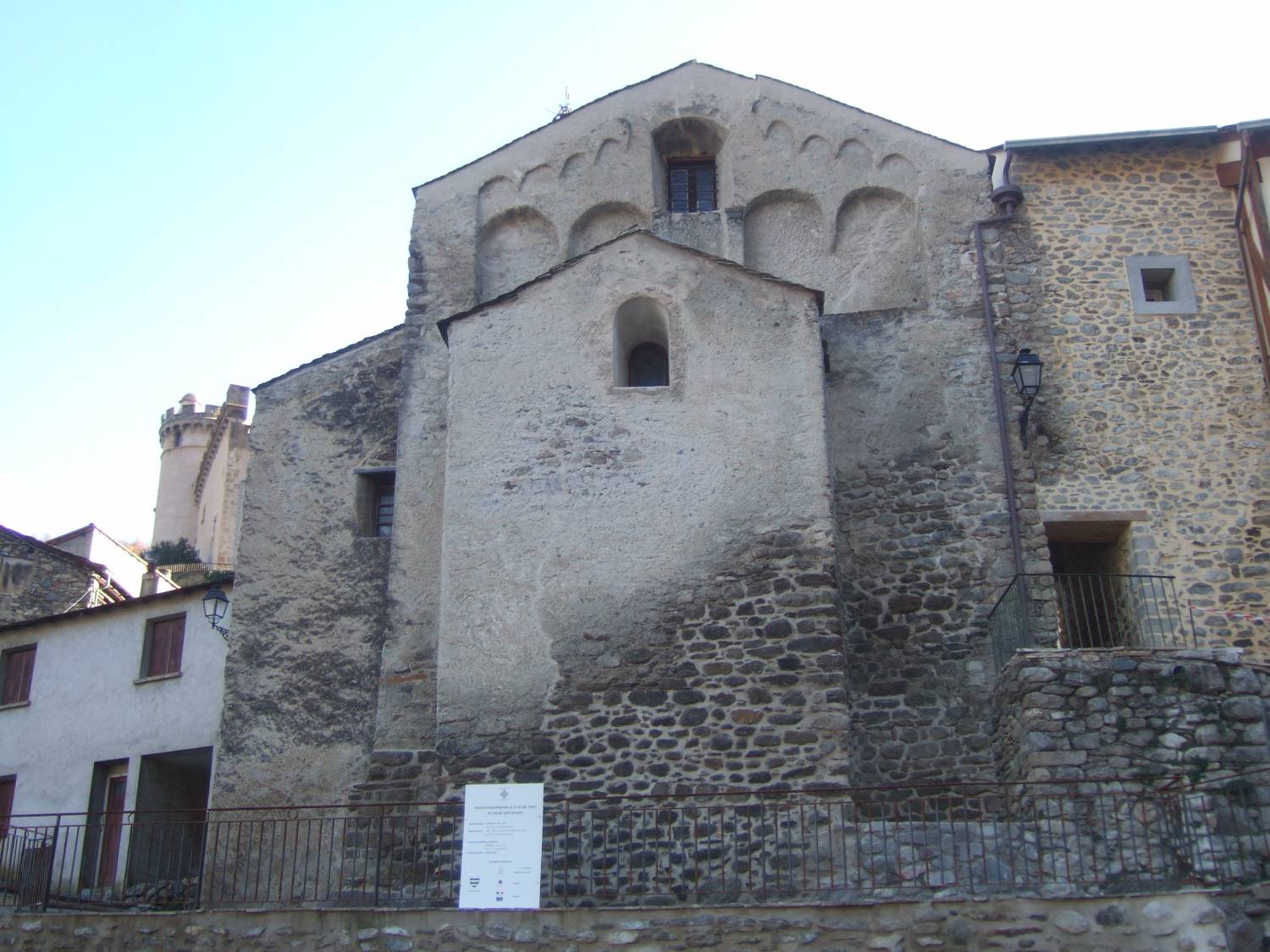 Église de nef unique à abside semi-circulaire, Saint-Jacques est composée de chapelles latérales sur le côté nord. La nef est divisée en quatre travées, par des pilastres, et bordée de chapelles latérales postérieures au reste de l’édifice. Un petit clocher carré a été élevé dans l’alignement des chapelles, au nord de l’abside. Dans sa partie supérieure, il est percé de quatre ouvertures en plein cintre surmontées de quatre minuscules oculi. Au sommet, le clocher est couronné de créneaux et coiffé d’une cage comportant une cloche. L’abside est ornée d’un décor d’arcatures comprises dans trois panneaux. Ce décor se poursuit tout au long de la nef. L’extension du décor « lombard » au mur pignon occidental est extrêmement rare.