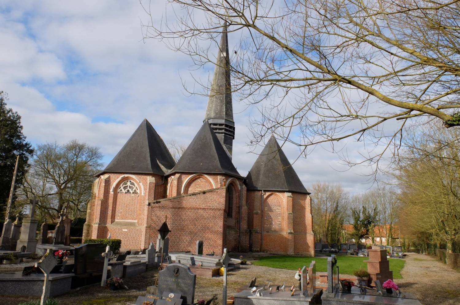 Le plan est typique d’une église-halle. Le clocher octogonal est un des plus hauts de Flandre.