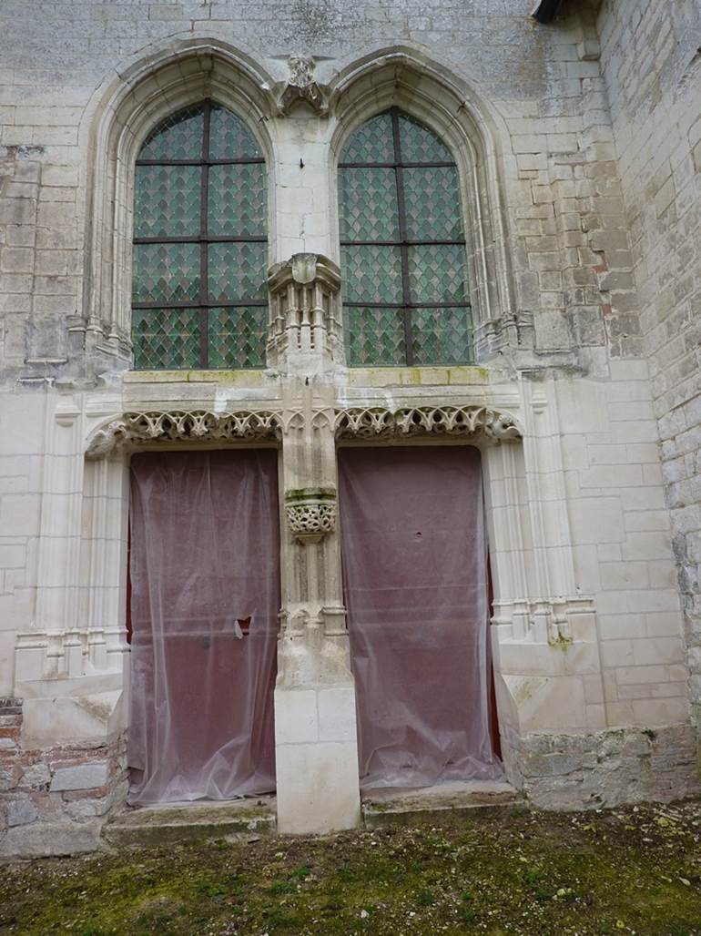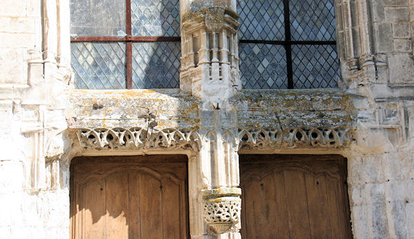 Le portail se compose d’une porte à linteau droit, séparée en deux parties par un trumeau, dont la base profilée portait une statue; ce linteau est décoré de petites arcatures tréflées, flanquées à leurs extrémités de deux monstres tenant des pampres qui se prolongent et se développent sous les arcatures et sur toute la longueur du linteau.