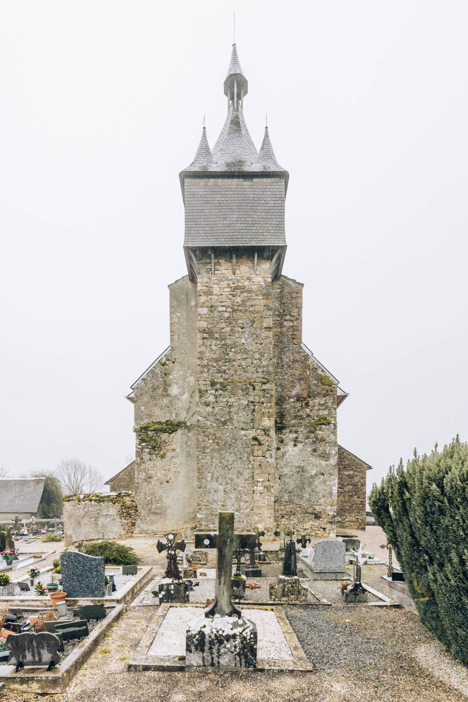 L’église Saint-Martin est composée d’une nef rectangulaire flanquée de deux chapelles latérales et d’un chœur à pans coupés. Le clocher est une haute tour carrée avec une chambre des cloches à encorbellement à 5 clochetons en ardoises bâti sur le pignon ouest.