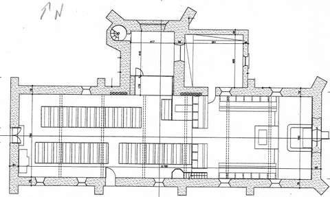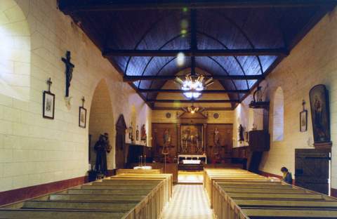 Une voûte lambrissée, en arc brisé, de facture récente, couvre la nef et le chœur. Du côté nord, une ouverture donne accès à un oratoire exigu aménagé au XIXe siècle : il est, en partie, pris sur la salle basse du clocher avec laquelle il communique.