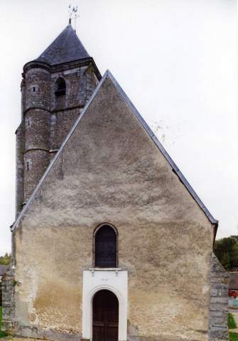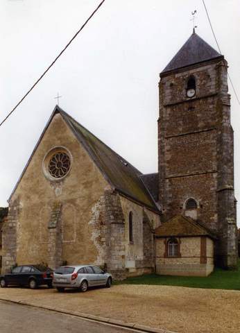 Toutes les baies de la nef sont en plein cintre excepté celle, remaniée, de la façade occidentale ; les deux fenêtres du chevet ont été bouchées, certainement au XIXe s., pour la pose du retable du chœur. Au-dessus s’ouvre un oculus percé lors d’un agrandissement de l’église sans doute contemporain du clocher : celui-ci, hors-œuvre, forme une tour quadrangulaire de 5 m sur 4 m à la base, haute de 24 m : ses trois étages sont soulignés par quatre cordons. Le clocher est flanqué à l’angle nord-ouest d’une tourelle abritant un escalier. Cette élévation régulière et massive, avec ses baies en arc brisé, suggère une fonction défensive, datant peut-être des XVe-XVIe siècles. Les matériaux de la nef et du clocher sont homogènes : l’appareil des murs est composé de silex ; les contreforts, les corniches ainsi que le soubassement du clocher sont de grès. Le toit de la nef, anciennement de tuiles plates, a été couvert d’ardoises comme le clocher.