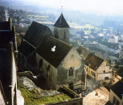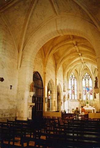 L’église paroissiale actuelle se compose de deux parties distinctes : la nef unique, dont les murs gouttereaux sont percés de fenêtres en plein cintre à double ébrasement, peut être du XIIe ou du début du XIIIe s., comme l’étage inférieur du clocher implanté au sud-est ; quant au chœur à chevet pentagonal et aux travées qui le précèdent, ils constituent un ensemble homogène du style gothique final, élégant et lumineux.