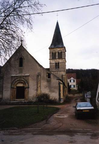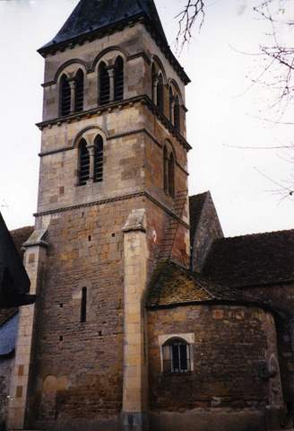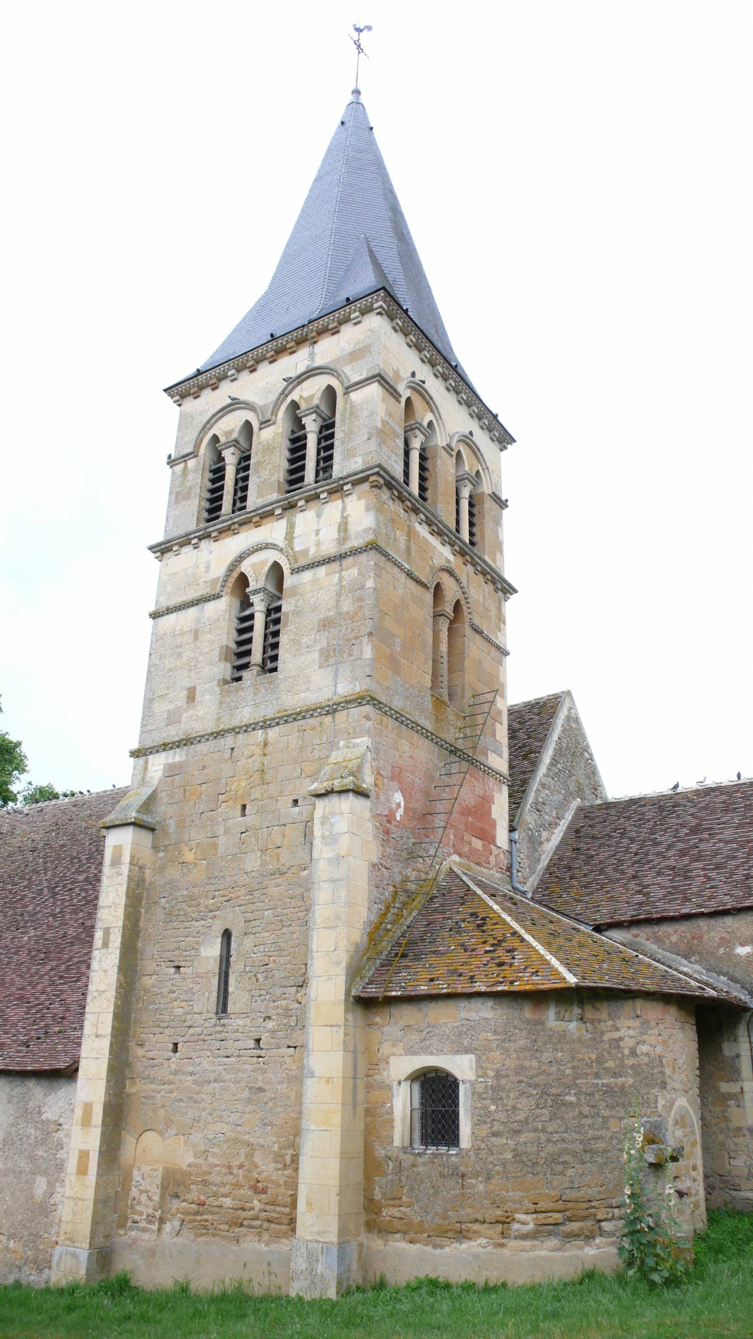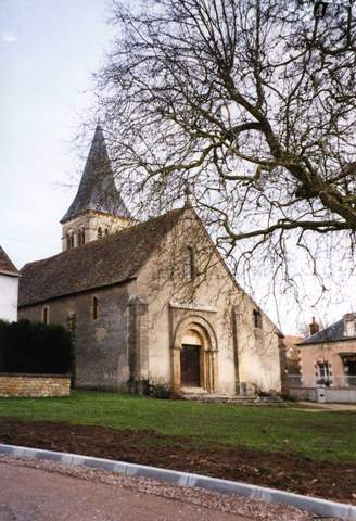 Située à 16 km au nord de Nevers, la petite commune de Parigny-les-Vaux possède une église qui a une particularité unique en Nivernais. L’église paroissiale dédiée à saint Jean-Baptiste est en effet composée de deux églises romanes, d’époques différentes, accolées l’une à l’autre. La plus petite, que la plupart des spécialistes font remonter au XIe s., sert de bas-côté sud à la plus grande qui date du XIIe siècle. Deux éléments de cette église Saint-Jean-Baptiste sont particulièrement intéressants : le portail et le clocher. La façade à l’ouest, très remaniée, est épaulée par deux contreforts plats. Le portail, en plein cintre, s’ouvre dans un massif de maçonnerie en saillie. Il est protégé par un glacis en pierre reposant sur une corniche soutenue par des modillons unis. L’arc à ressauts du portail est formé de trois rouleaux. Sous le rouleau d’archivolte, deux autres rouleaux ornés, d’ un décor alvéolé, retombent sur des colonnes fuselées et annelées, fabriquées au tour. Le tympan est nu et, au-dessus du portail, en son milieu, la façade est percée d’une baie en plein cintre. Au XIXe s., c’est un oculus, aujourd’hui bouché, qui éclairait la façade. Le clocher carré, à deux étages, assez remarquable, s’élève au-dessus de la coupole de l’édifice du XIe siècle. Le soubassement, percé d’une archère au sud, est construit en petit appareil assez irrégulier ; il est épaulé par deux petits contreforts. Les deux étages supérieurs, de construction postérieure plus soignée, sont ajourés par des baies en tiers-point. Le premier étage est marqué par un cordon orné de perles. Sur chacune de ses faces, il est ajouré « par deux élégantes baies géminées dont l’arc brisé, garni de besants, retombe de chaque côté sur de simples piédroits et au centre sur une colonnette à chapiteau décoré de feuilles s’enroulant en boule sous les angles du tailloir enrichi de perles ». Ces baies s’ouvrent sous un grand arc en plein cintre qui est formé par le deuxième cordon perlé régnant au niveau du tailloir des chapiteaux. Le second étage repose sur une corniche. La tablette de cette corniche est taillée en doucine et s’appuie sur des modillons unis. Cet étage est éclairé par des doubles baies géminées, ressemblant à celles du premier étage. Elles sont surmontées d’un grand arc en plein cintre. Les moulures de l’arc font retour sur le parement au niveau du tailloir des petites colonnes portant l’arc brisé des baies. Le clocher, couvert en ardoise, est couronné d’une flèche octogonale à égout retroussé de plan carré qui repose sur une corniche à modillons unis. La nef de l’église primitive, très étroite, était couverte d’ une voûte en berceau dont la naissance est encore visible. La travée précédant l’abside est couverte d’une coupole sur pendentifs garnie à sa naissance d’un cordon perlé. Les arcs en plein cintre qui supportent la coupole retombent sur des colonnes engagées dans de gros piliers et couronnées de chapiteaux. La petite abside semi-circulaire, voûtée en cul-de-four, était autrefois utilisée comme sacristie et avait été isolée du reste de l’édifice. Une statue’ en bois doré et peint, datant du XVIIIe s., est conservée dans cette abside. Trois grandes arcades, deux en plein cintre, la dernière légèrement brisée permettent le passage entre les deux nefs. La construction du XIIe s. est plus vaste que l’église primitive du XIe s., mais de nombreuses restau ration s lui ont fait perdre son caractère. La nef, reconstruite au XVIe s., est couverte en charpente et possède de belles poutres formant entraits. Elle est éclairée au nord par trois fenêtres en plein cintre et une fenêtre trilobée qui possède un panneau’ de vitrail du XVIe s. représentant un archer. Quant au chœur à chevet plat, il a été reconstruit en 1786. Il est décoré par un retable en bois doré inscrit à l’Inventaire supplémentaire des Monuments historiques depuis 1973. Au milieu de ce retable, une toile peinte du XIXe s. représente une Vierge à !’Enfant accompagnée de saint Jean-Baptiste. Deux statuettes en bois doré, du XVIIIe s., l’une représentant saint Vincent, l’autre sainte Agathe prennent place de chaque côté du tableau. L’église conserve, en plus des objets déjà cités, un bénitier en fonte du XVIe s., classé Monument historique, ainsi qu’une chasuble qui aurait été donnée par l’impératrice Eugénie. Pour la réfection de la couverture du clocher et la pose d’un paratonnerre, la Sauvegarde de l’Art français a accordé 78 000 F en 1998.