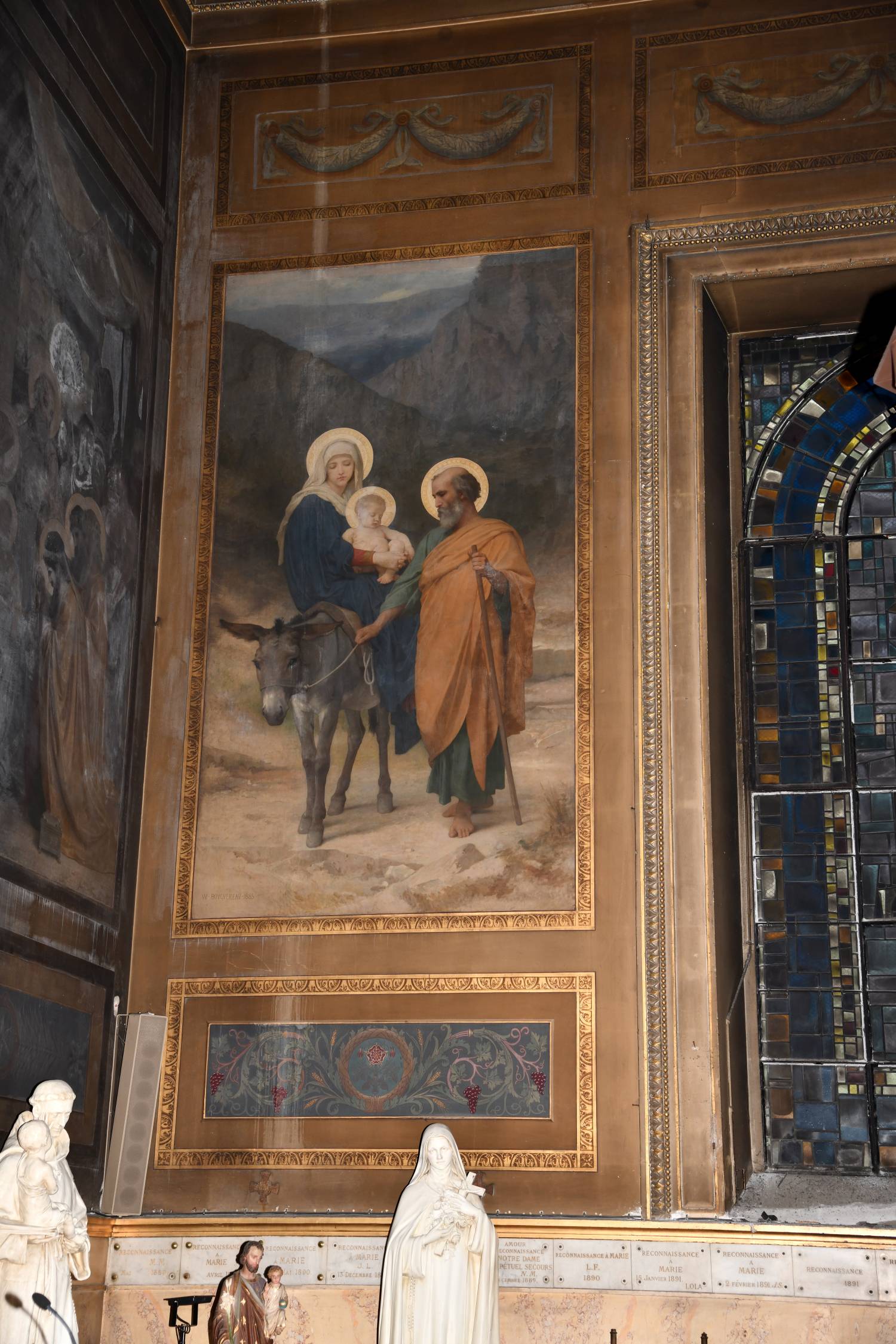 Malheureusement, l’état actuel de conservation de ces peintures est extrêmement préoccupant : elles restent visuellement très sombres et présentent noircissements et jaunissements. Depuis leur mise en place au XIXe siècle, ces toiles ont subi une forte exposition prolongée à l’humidité, mais aussi aux fumées et à la chaleur émanant des cierges placés en contrebas. Dès le XXe siècle, deux campagnes de restauration ont été menées, puisque les peintures étaient déjà largement dégradées. La première eut lieu en 1911, suivie d’une seconde en 1954. Toutes deux comprenaient des lessivages ainsi que des retouches au niveau des vernis. Une rénovation totale de la toiture en cuivre de la chapelle, menée l’an dernier par la ville de Paris , permet d’écarter considérablement le risque de dommages futurs et de garantir la pérennité de la restauration à venir.