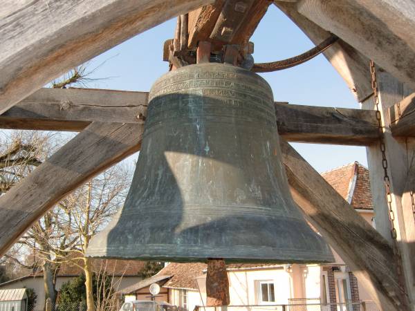En 1858, un escalier permettant de monter au clocher est mis en place. En 1869, le Conseil municipal décide l’acquisition d’une cloche. En 1890, le clocher est restauré à l’occasion de la réinstallation, après refonte, de la cloche, baptisée Marie-Louise. En effet, « le bedeau, au cours d’un enterrement, l’avait fêlée avec son maillet de fer… ». Elle pèse 825 kg et est accordée sur la note « mi ».