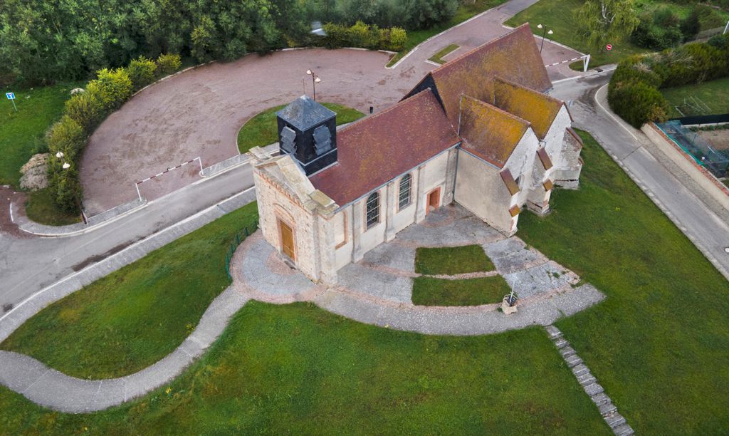 La façade est classique avec un fronton en briques. Un petit clocher, abritant l’unique cloche, surmonte la nef.