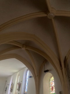 À droite du chœur, la chapelle sud-est vouée à la Sainte Vierge. Ce n’est qu’en 1851 que fut rajoutée la sacristie.