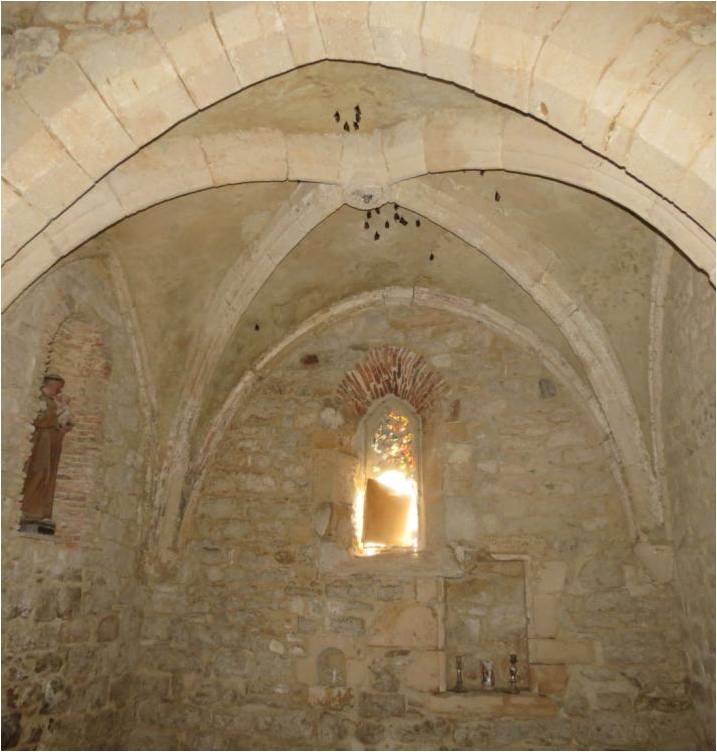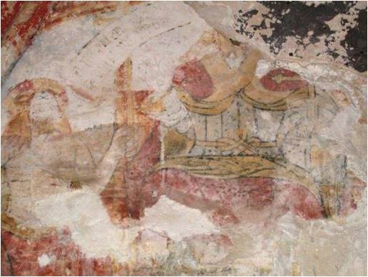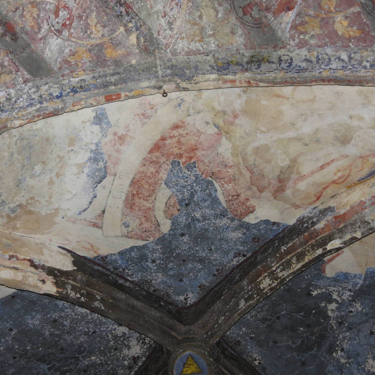 Les peintures de la voûte sont encore en majeure partie recouvertes par un décor postérieur, probablement du XIXe, qui a noirci.