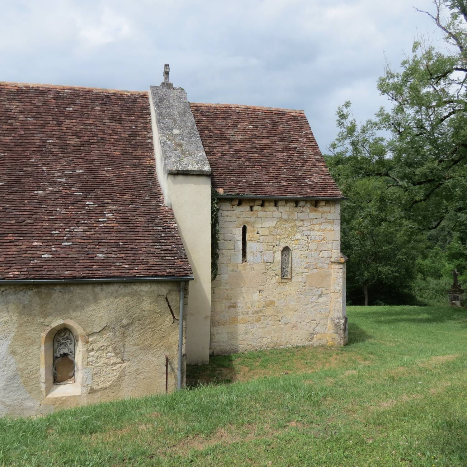 Les murs de la nef conservent des traces d’une litre funéraire avec des armoiries non identifiées. Le mur sud de la nef arbore un écu aux armes des Genouillac.