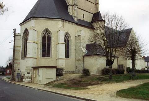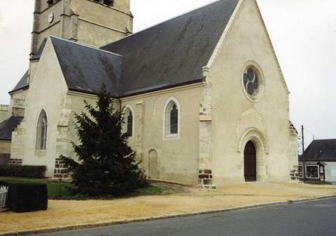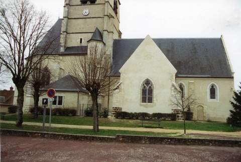 L’église paroissiale Saint-Étienne était à la collation de l’abbé de Jargeau. D’origine romane, l’édifice comporte un vaisseau unique sur lequel sont greffés une chapelle au nord et au sud, une travée droite sous clocher, épaulée d’une sacristie au nord et un chœur polygonal. Ce dernier appartient au XVIe s. Il comprend une abside à trois pans précédée d’une travée droite. L’ensemble, voûté d’ogives, est éclairé de cinq baies à remplages flamboyants semblables aux deux fenêtres de la travée du clocher, contemporaine du chœur. Celle-ci présente un plan carré. Quarre piliers en force saillie sur l’intérieur du vaisseau , recevant les quatre arcades qui portent la totalité des maçonneries du clocher, accentuent la division tripartite du volume intérieur de l’édifice. La porte ouverte, dans le mur goutterot nord, sur la sacristie reconstruire au XXe s., est surmontée de deux pinacles reposant sur des culots sculptés encadrant une accolade. Le linteau était autrefois orné d’un blason. La nef, romane dans ses volumes extérieurs, a été forcement remaniée du XVIe au XIXe s. Il s’agissait vraisemblablement à l’origine d’un simple vaisseau charpenté donc les murs goutterots étaient épaulés à l’extérieur de contreforts plats en faible saillie. Au XVIe s. le berceau lambrissé, encore conservé dans les combles, a été masqué par des voûtes d’ogives ; les colonnettes engagées qui reçoivent les ogives, ainsi que les contreforts d’angle visibles en façade appartiennent à cette campagne de travaux. Par la suite, une chapelle rectangulaire a été accolée au mur nord ; la chapelle sud, construite en brique et pierre de taille, dace du XIXe s., tout comme les six fenêtres à linteau trilobé éclairant la nef, la rose percée en façade et la tribune installée à son revers. Une voûte en brique est venue rem placer la voûte du XVIe s. sur la nef. Le portail en plein cintre, largement remanié, éraie autrefois protégé par un porche en charpente. Les trois parties de l’édifice sont nettement différenciées dans l’élévation extérieure de l’édifice. La nef, peu élevée, ainsi que le chœur, à la toiture plus élancée, sont dominé s par la silhouette du clocher. De plan carré, il comporte quatre niveaux scandés de larmiers ; le niveau supérieur est ajouré de deux baies géminées par face. Le clocher est couronné par une flèche de charpente. La Sauvegarde de I’Art Français a· accordé une aide de 50 000 F en 1993 pour la réfection des maçonneries extérieures.