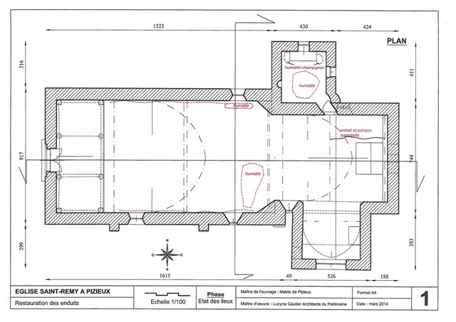 Les travaux ont porté sur la restauration de la couverture et de la charpente de deux travées de la nef. L’ensemble du faîtage a été revu en plomb, y compris le simple épi de faîtage, remplaçant ainsi les tuiles vernissées et l’épi en terre cuite.