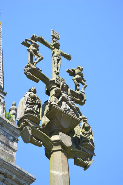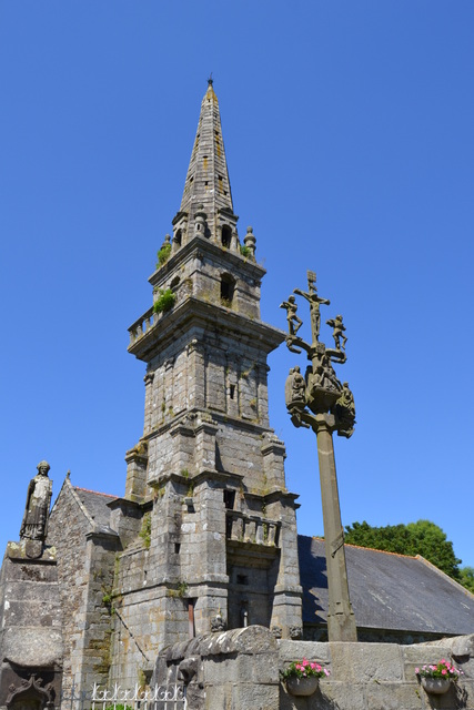 Le plan de l’édifice est rectangulaire et comporte une nef avec deux bas-côtés à cinq travées au nord et quatre au sud, la tour-clocher (1580) étant établie à l’angle sud-ouest. L’ensemble date du XVIe s. ; seuls les murs extérieurs ont été refaits au XIXe siècle. La masse de la tour-clocher écrase quelque peu la chapelle, mais cette disposition n’est pas exceptionnelle : elle se retrouve à la même époque à Goulven, à Saint-Thégonnec, à Pleyben. Les récents travaux de consolidation et de restauration ont permis de redonner tout son éclat à l’architecture de la tour-clocher (en particulier en complétant la balustrade de la galerie, qui était à moitié détruite), au pied de laquelle s’ouvre l’ancienne entrée principale avec ses douze niches qui, semble-t-il, ont abrité jadis les statues des sibylles –et non des apôtres – aujourd’hui présentées à l’intérieur de l’édifice.