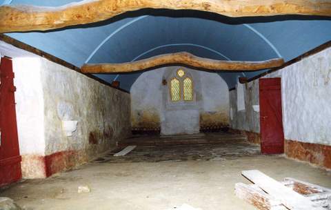 L’édifice est d’une grande rusticité : plan rectangulaire sans transept, une porte dans chaque mur au nord et au sud (mais pas à l’ouest), deux fenêtres dans le mur sud et une à l’est. Le mur occidental porte un clocheton amorti en dôme ; un escalier sur le rampant nord permet d’y accéder. Seuls les murs sud et ouest sont appareillés en pierre de taille. La couverture en ardoise vient d’être refaite: la précédente avait été posée en 1896. Le lambris de la voûte domine deux entraits constitués de deux troncs d’arbres à peine dégrossis, arqués dans leur partie centrale. Le nettoyage des murs intérieurs a mis au jour des peintures de couleur ocre, représentant, au nord, de grands feuillages et des croix pattées, inscrites dans un cercle, au sud un grand vase et deux fleurs de lys à gauche de la porte, et le monogramme IHS (abréviation en latin de Iesus Hominum Salvator, et en breton de Iesus Hor Salver) surmonté d’une croix. La base des murs du chevet est décorée de festons de couleur noire.