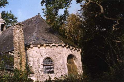 La chapelle du château de Talhouët est un charmant édifice du début du XVIIème s. qui aurait été construite par la famille du Bot dans les années 1624-1625. Frocier de La Messelière, dans les Filiations bretonnes,cire en effet Jean du Bot, écuyer, seigneur de Talhouët en Pluherlin, marié le 1er octobre 1622 à Jeanne Le Bocceuc, dame de la Tercrée en Lanuée . De plan rectangulaire et de petites dimensions (environ 11 m sur 7 m), la chapelle se termine par un chœur à pans coupés. Tandis que la façade et les murs goutterons sont de moellons et de petites pierres de granit assisées, à l’exception des encadrements et des chaînages d’angle, le chœur présence un bel appareillage de pierres de caille (granit). Le mur-pignon, percé d’une porte plein-cintre assez basse, elle-même surmontée d’une niche, est coiffé d’un lanternon de style classique. Les crochets qui en décorent les rampants et les gargouilles d’où ces derniers s’élancent, témoignent de l’adaptation au vocabulaire classique de modes décoratives antérieures. Une corniche à modillons ceint l’édifice. Sur son flanc sud, à la jonction d’un petit bâtiment, servant vraisemblablement de sacristie, a été percée une autre porte, elle aussi de plein-cintre, encadrée de pilastres ornés à leur base de crossettes et présentant en son claveau central une pierre pendante. L’impression de charme qui se dégage de la chapelle par son volume et son homogénéité, se ressent tout autant à l’intérieur. Éclairée par les trois fenêtres du chœur, la tour en plein-cintre, celle d’axe plus large et plus haute que celles qui l’encadrent, la chapelle est couverte d’une très belle voûte lambrissée à caissons soulignés de rosaces ; le travail de la voûte est particulièrement soigné et élégant au-dessus du chœur où il forme un réseau en étoile qui part d’une rosace polychrome armoriée. On rappellera que les armes de la famille du Bot sont « d’azur à trois quinte feuilles d’argent ». L’édifice renferme par ailleurs un autel en pierre habillé de panneaux de bois peine et deux bénitiers de granit. Pour la restauration de la toiture, la Sauvegarde de l’Art Français a octroyé en 1995 une subvention de 23 000 F au propriétaire qui a entrepris la restauration du domaine de Talhouët.