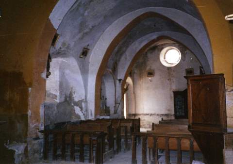 Sur un Éperon dominant le site de Sainte-Jalle et sa belle église clunisienne, le village du Poët-Sigillat possède deux chapelles, aujourd’hui propriétés privées, Saint-Bernard et Notre-Dame de Beaulieu, et l’église paroissiale dédiée à saint Martin. La volonté d’orienter la construction de celle-ci a conduit- ses constructeurs à l’implanter perpendiculairement à la ligne de crête alors que les habitations sont installées nord-sud. D’esprit encore très roman: nef unique voûtée en berceau rythmée par deux arcs doubleaux et abside semi-circulaire couverte d’un cul-de-four, il s’agit cependant d’une reconstruction effectuée à la fin des guerres de religion . Le linteau de la porte d’entrée ouverte au sud porte la date de 1605. Quelques éléments du mobilier antérieur au XIXe s. sont conservés : un autel en noyer du XVIIIe s., un bénitier sculpté et des bancs de bois aux accoudoirs chantournés. Les fondations de l’édifice reposent au sud-est sur le rocher, au nord-est sur de la marne. Cette différence de nature et de consistance est la cause des désordres qui sont visibles aux voûtes. Des fissures apparaissent , tant au niveau de la voûte en cul-de-four de l’abside que de la voûte en berceau de la nef. D’autres fissures se produisent à la jonction du chœur et de la nef. Une partie du mur nord a déjà fait l’objet d’une reprise en sous-œuvre. Trois campagnes sont prévues pour l’exécution des travaux nécessaires. Pour la première, pose de témoins sur les linteaux et voûtes et reprise en sous-œuvre des fondations de l’église et du mur de clôture du cimetière qui la jouxte au sud, la Sauvegarde de l’Art Français a donné une aide de 50 000 F en 1993.