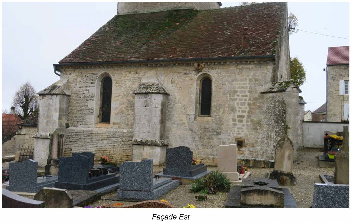 1857-1860: M. Bernard, architecte, qui prend en charge les travaux, signale la « vétusté de la tour construite en moellon et pierre de taille, la charpente du comble et la couverture en très mauvais état ». Il prévoit alors la démolition de la couverture du comble de la charpente et du beffroi. Les travaux prévoient la mise en protection de la voûte, l’arasement du dernier rang de maçonnerie pour recevoir le cordon formant appui de baies du clocher, construit avec les pierres de la carrière de Poiseul situé à 4 km et le parement réalisé à la boucharde et pierre ébousinée, le clocher est reconstruit à l’aide de moellons neufs et des anciens récupérés. Le clocher est surmonté d’une flèche quadrangulaire. Le toit du clocher est donc modifié ; le toit bas, à pavillon, a laissé place à une flèche et les baies cintrées à des baies géminées.
