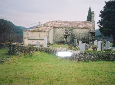 L’église dédiée à Saint-Julien était celle d’un prieuré de l’abbaye Saint-Chaffre du Monastier puis à partir du XIIe s. du monastère voisin de Charay. Le desservant en était nommé par le prieur de Charay jusqu’au milieu du XVIIIe s., puis par l’évêque de Viviers. Malgré les pillages et destructions des protestants constatés dans le rapport sur les églises du diocèse en 1583, le gros œuvre de l’église romane a été épargné. Le petit édifice se présente donc dans toute sa simplicité et sa pureté du XIIe s. : une nef unique de deux travées dont la voûte de pierre en berceau est en partie conservée ou reconstituée en matériaux plus légers ; le chevet en hémicycle est couvert d’un cul-de-four parfaitement appareillé ; une chapelle latérale voûtée d’arêtes a été construite au XVIIIes., sur le côté sud. Une autre chapelle a été greffée en 1744 sur le nord du chevet, elle est également voûtée d’arêtes.