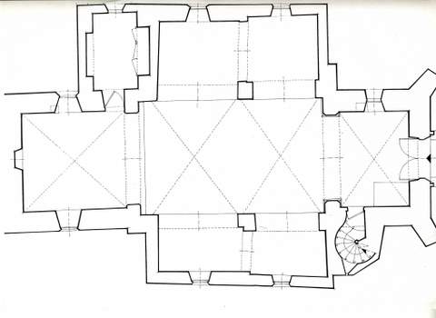Le bâtiment se présente aujourd’hui avec une grande cohérence, bien qu’il ait été construit à diverses époques : à l’origine il comportait une nef à deux travées, sans collatéraux, complétée par un sanctuaire moins élevé, de plan carré, dont la largeur est à peine inférieure à celle de la nef. L’arc triomphal est brisé. La nef est voûtée d’arêtes, retombant sur des culots à peine esquissés. Le sanctuaire, voûté de même, est couvert d’un toit à trois pentes, plus bas que le faîtage de la nef, soulignant ainsi les deux parties de l’édifice.