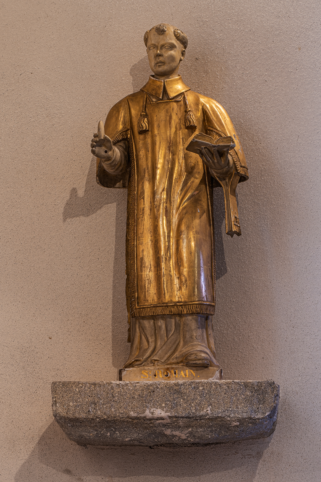Le mobilier est assez riche. On note : un bénitier posé sur un fût qui a dû être celui d’une croix et où l’on voit deux personnages, saint Romain et saint Vincent (?), une cuve en pierre, gravée de signes frustes (la lune, le soleil), un Christ en croix du XVIIIe s. (qui aurait été jusqu’en 1905 au prétoire du tribunal de Montbrison), plusieurs statues en bois doré et peint, du XVIIIe siècle : saint Vincent, tenant sa grappe, de style baroque, saint Jean-Baptiste, saint Romain diacre, tenant dans la main la langue que Dioclétien lui a fait couper pour ne plus l’entendre professer sa foi, de facture un peu raide, saint Isidore, avec ses attributs, un confessionnal de grande taille, daté de 1785.