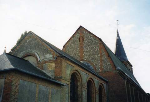Église Notre-Dame de Préaux a été reconstruite en 1776 avec les matériaux provenant de la collégiale de Beaulieu supprimée vers 1772. En effet l’ancienne église paroissiale menaçait ruine et en dépit des remarques de tous et des objurgations des archevêques en visite pastorale, aucune campagne de travaux n’était réalisée. Cependant Mgr de La Rochefoucauld prenait la décision, le 19 octobre 1772, de mettre fin à des décennies de constats sans lendemain : « L’église de la paroisse de Préaux étant, à cause de sa vétusté et par son mauvais état, dans le cas d’être rebâtie, pour diminuer les frais d’une construction si onéreuse, sur les demandes qui nous en ont été faites, les matériaux, la charpente, les tuiles et autres démolitions de l’église du prieuré de Beaulieu seront employés à bâtir la nouvelle église de Préaux »‘. Le dossier d’adjudication est préparé par Gilbert, architecte expert juré du roi, sur la base d’un édifice dont la longueur sera d’environ 88 pieds, la largeur d’environ 39 pieds et la hauteur d’environ 24 pieds, « le tout en pierre, brique et caillou ». La mise à prix est de 70 000 livres. Le marché est emporté par le sieur Michel Delafosse, de Rouen, pour 29 800 livres. Les travaux doivent être achevés pour la Saint-Michel 1776. Le 12 août 1777, a lieu la bénédiction de la nouvelle église. Les travaux d’aménagement intérieur s’étalent dans les années qui suivent. Le supérieur du séminaire Saint-Nicaise vend pour 900 livres la contretable, le tableau, les stalles et les lambris de l’ancienne église de Beaulieu. L’achèvement des travaux du chœur et la construction de la sacristie datent de 1836. L’église de Préaux se compose d’un important massif occidental dominé par un puissant clocher de plan carré et d’une vaste nef à vaisseau unique de forme rectangulaire donnant accès par des pans coupés à un chœur plus étroit de trois travées droites se terminant par un chevet plat. La construction, large et imposante, est dominée par sa puissante façade occidentale. La porte d’entrée est encadrée de pilastres jumelés surmontés d’un entablement dorique ; elle est coiffée d’un clocher carré orné de pilastres et amorti de volutes latérales dont la composition assez lourde trahit une intervention plus tardive dans la seconde moitié du XIXe s., voire au XXe siècle. Tandis que les contreforts et les encadrements des fenêtres sont en briques, les murs de moellons sont couverts d’un enduit peu gracieux dont la reprise serait de nature à modifier avec bonheur l’aspect général extérieur de l’édifice. Afin d’épouser le profil de la voûte en berceau de la nef, charpente et couverture de cette dernière sont à pans. Nombre d’éléments dans l’architecture de l’église de Préaux rappellent l’église de Grémonville due à l’architecte Charles Thibault auquel fit si souvent appel le président à mortier Pierre-Robert Le Roux d’Esneval, dit le président d’Acquigny pour ses campagnes de travaux dévotes. La nef est largement éclairée par de grandes baies cintrées au nombre de quatre pour chacun des côtés. Rythme élégant des fenêtres et des larges pilastres d’ordre dorique, entablement largement développé et voûte en berceau plein cintre dont les grands caissons font écho au registre inférieur, révèlent une inspiration puisée dans les réalisations de Soufflot. L’architecte dans son parti a tenté avec succès de mettre en valeur les éléments intéressants de mobilier dont il disposait ; ainsi les autels latéraux placés dans les pans coupés de la nef conduisent-ils le regard avec une certaine théâtralité vers le retable monumental qui occupe le mur du fond du chœur. L’imposant baldaquin qui le couronne protège entre ses volutes un pélican, thème mystique. Les deux grandes statues signées de Barthélemy Paillet et datées de 1721 représentant la Vierge de l’Annonciation et !’Ange Gabriel qui ornaient précédemment la collégiale de Beaulieu et qui encadrent le maître-autel orné d’une Nativité, furent réinstallées en 1782, grâce au produit d’ une quête. Les stalles du XVIe s. placées dans le chœur proviennent elles aussi de l’église de Beaulieu, tout comme les pierres tombales de la nef; cette réutilisation avait été prévue au moment de la construction et certaines d’entre elles abritent les restes des seigneurs de Préaux. Quant à l’élégant buffet d’orgue qui domine la tribune de l’entrée, il tire son origine de l’abbaye de Gruchet-le-Valasse. Chaire et confessionnaux complètent cet ensemble. Pour le ravalement des façades, la réfection de la charpente du clocher et des interventions dans la couverture, la Sauvegarde de l’Art français a accordé une subvention de 100 000 F en 1998.