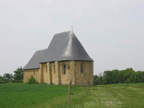 Cette petite chapelle est constituée par les deux volumes simples, accolés, de la nef et d’un chœur assez développé, à chevet hémi-circulaire ; chœur et nef sont couverts de toitures en ardoise très pentues, en mauvais état. Le chœur est éclairé de six fenêtres en plein cintre sans mouluration, à l’exception de l’une d’entre elles, dont on devine encore le remplage tréflé : bien que non voûté, il est épaulé par de nombreux contreforts de section carrée. L’élévation du chœur domine celle de la nef, construite au XVIIIe s., plus courte et plus simple encore que le chœur. La façade est percée d’une porte cintrée du XVIIIe s. et d’une petite fenêtre axiale en plein cintre. Entre la nef et le chœur demeure la souche en brique d’un petit clocher.