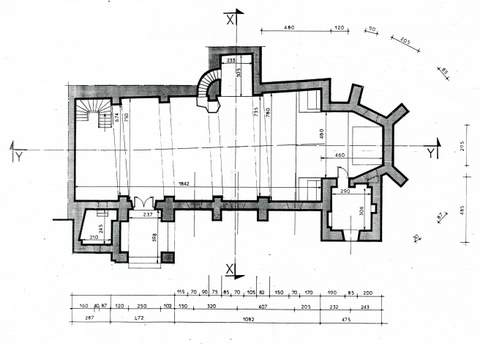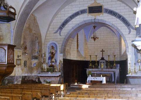 L’église Saint-Sébastien de la Caminade est mentionnée en 940 dans l’acte de sa donation par l’archevêque de Narbonne, Aymeric, à l’abbaye de Saint-Pons-de-Thomières . Plus tard, le vicomte de Narbonne a dû s’en emparer, puisqu’en 1100 le vicomte Aymeric la donne de nouveau à Saint – Pons. Lorsqu’en 1318 Saint Pons fut érigé en diocèse, l’église Saint-Sébastien revint à l’archidiacre. Mais les guerres de religion amenèrent la destruction, au moins partielle, de l’édifice. En 1567, après le passage des protestants, différents témoins la disent « pilhée et arrazée ». Cependant des restes de voûte, à 1,20 m au-dessus du sol, s’inscrivent en faux contre l’arasement. Mais l’essentiel de la construction actuelle date du début du XVIIe s. Une nef unique de cinq travées précède une courte travée droite de chœur et une abside à trois pans. L’entrée de l’église située au sud s’ouvre sous un porche élégant. Le clocher s’élève sur le flanc nord, au niveau de la quatrième travée de la nef. L’ensemble du site, église, mairie et leurs abords, a été inscrit à l’Inventaire supplémentaire des Monuments historiques le 31 décembre 1942. Au XIXe s., une partie de la couverture d’origine en lauzes de schiste a été remplacée par des tuiles mécaniques et le clocher coiffé d’une disgracieuse flèche en tôle. Le manque d’entretien de l’édifice, pendant de longues années, a provoqué de g raves infiltrations d’eau dans les murs gouttereaux. Il a fallu à partir de 1992 rétablir de toute urgence l’étanchéité de la construction. Pour la réfection en lauzes d’une grande partie des toitures et la reprise des maçonneries extérieures et intérieures, la Sauvegarde de l’Art Français a accordé une aide de 50 000 F en 1993.