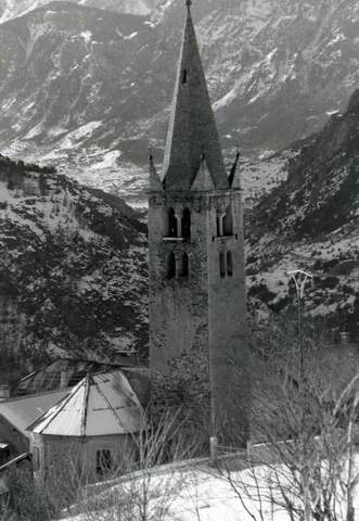 L’église paroissiale Saint-André est située dans un pittoresque village de montagne, dominant la vallée de la Durance et le site de Briançon. Elle a été consacrée le 14 mars 1457, et n’offrirait rien de particulier si ce n’était son superbe clocher hors œuvre accolé au flanc nord, lequel mériterait une mesure de protection. Il appartient au même groupe de clochers de la fin du Moyen Âge que celui de la cathédrale d’Embrun. Présomptueux pour une église de village, il est percé de deux étages de baies géminées et couronné d’une flèche en tuf cantonnée de pyramidions. Du fait de sa situation très exposée aux intempéries et du manque d’entretien, il se serait immanquablement écroulé si des travaux importants de consolidation n’avaient été entrepris par cette petite commune. La Sauvegarde de l’Art français lui a versé une subvention de 30 000 F.