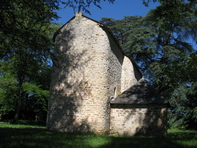 [2] L’édifice, long primitivement de 14,90 m hors œuvre, mesure aujourd’hui 17,90 m. La nef primitive avait 9,70 m et l’actuelle 12,70 m. La différence réelle est donc de 3 m, à laquelle il faut ajouter 0,90 m de muraille, correspondant à l’épaisseur du premier mur-pignon démoli. Cet ajout se reconnaît bien à l’extérieur (lignes verticales et surtout soubassements apparents). Le chevet est large de 5,00 m et long de 5,20 m hors œuvre.