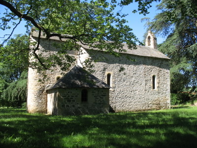 Chapelle Notre-Dame de Lugan. La butte de Lugan, à 1 km au nord de Puylagarde, a toutes les caractéristiques d’une motte castrale. Un fossé en demi-cercle la sépare nettement, au nord et à l’ouest, du plateau voisin. Les aménagements du site, au siècle dernier, pour en faire un lieu de pèlerinage ont été discrets ou bien ont été corrigés depuis. Ils respectent l’atmosphère de sérénité qui s’attache à cette petite colline inspirée. Une couronne de grands cèdres ajoute une note de majesté et de poésie. Les particularités de la chapelle permettent de dire que c’est un édifice du Xe siècle. Son orientation inhabituelle vers le sud-est est probablement due à des contraintes imposées par des édifices antérieurs, aujourd’hui disparus. La motte dut être abandonnée très tôt par le seigneur au profit de Puylagarde. Le fief appartenait au XIIIe s. à la famille du troubadour Bertrand de Paris (Parisot), qui en faisait hommage au comte de Toulouse (ainsi en mai 1259), ce qui n’implique pas qu’elle y ait résidé. Les routiers s’y seraient établis et y auraient entassé leur butin en 1381-1385, ce qui laisse supposer qu’à ce moment-là des bâtiments existaient encore à côté de l’église.