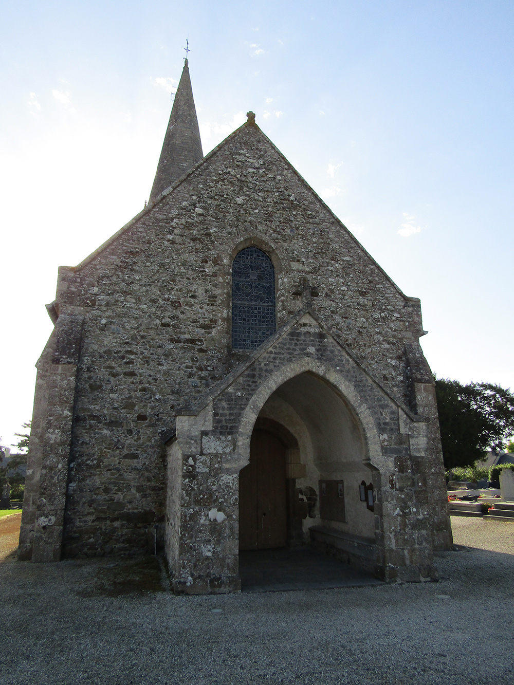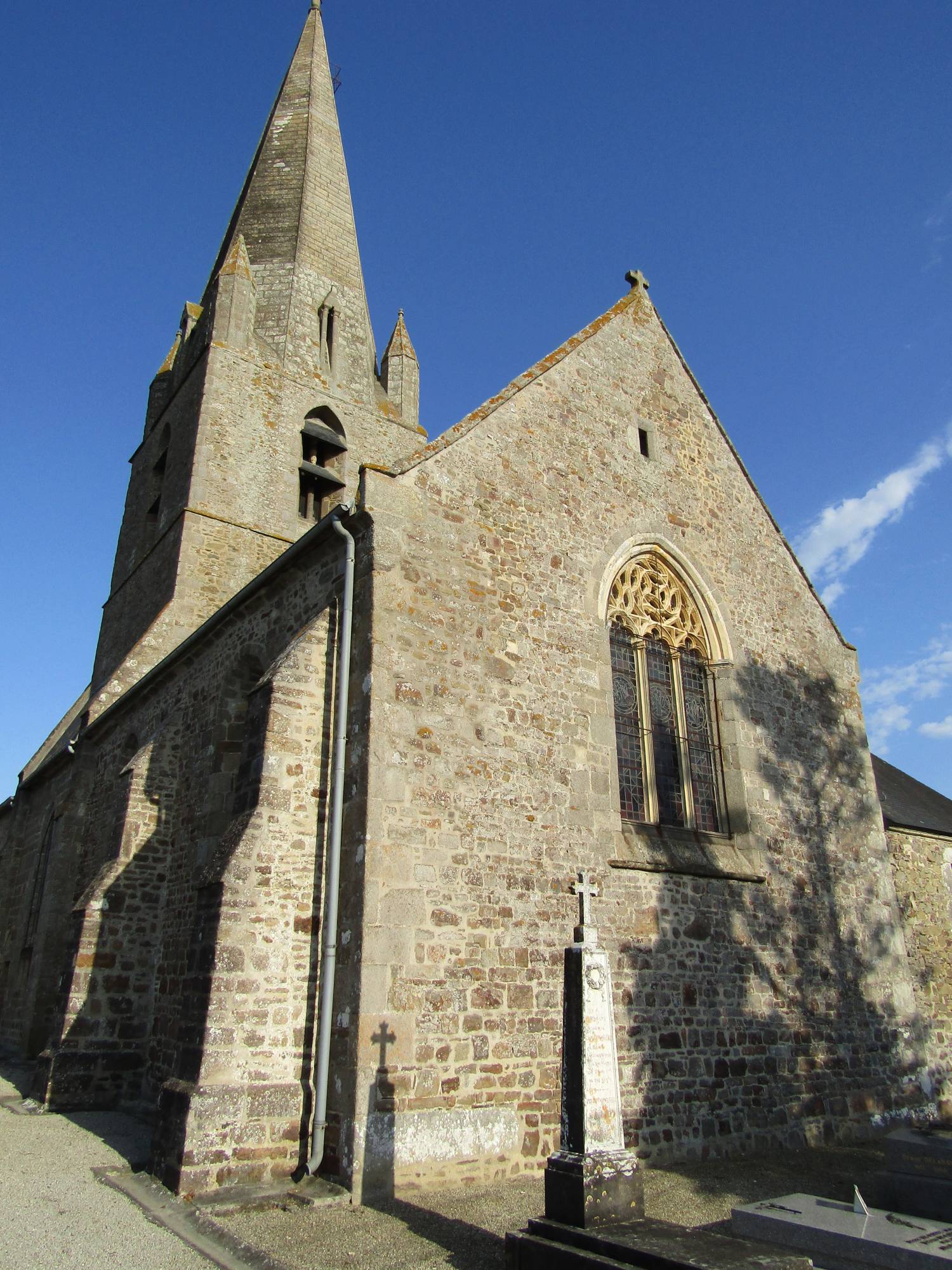 Les murs sont en moellons et pierres de taille, la couverture de la flèche du clocher est en pierre et celles de la nef et du choeur en ardoises.