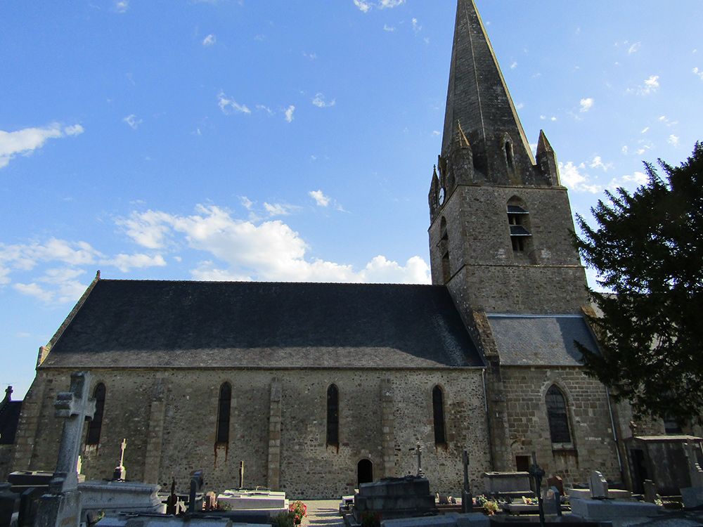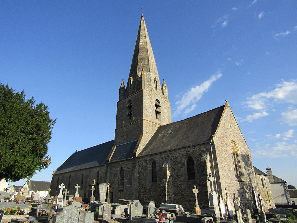 L’église actuelle a été construite pour la plus grande part (excepté le porche) au XIVe siècle. La flèche du clocher a été deux foit refaite après avoir été frappée par la foudre notamment en 1808, avec des pierres rachetées dans les démolitions de l’abbaye d’Hambye.