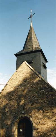De plan rectangulaire, l’église comprend une nef étroite prolongée par un chœur légèrement plus large sur son côté nord et se termine par un chevet plat. Construite avec différents appareils – tuf, grès, calcaire à grains fins et silex – l’église a malheureusement, en plusieurs endroits de ses maçonneries, reçu un enduit au ciment avec faux joints marqués en creux. Sa toiture est d’ardoises et la différence d’élévation entre la charpente de la nef et celle du chœur traduit très vraisemblablement un agrandissement de cette dernière partie à une époque ultérieure. Un petit clocher d’ardoises édifié sur un beffroi de plan carré domine la façade occidentale ; il semble dater de la campagne de travaux de la fin du XIXe siècle.