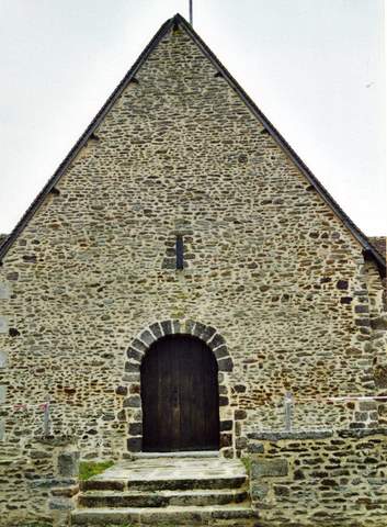 La construction de l’église remonte probablement à l’époque romane comme l’attestent les assises en feuilles de fougères (opus spicatum) du mur nord de la nef et la petite baie étroite surmontant le porche d’entrée. Au cours de la guerre de Cent Ans, en 1444, le village est incendié par les troupes anglaises établies à Fresnay-sur-Sarthe. L’église est remaniée dans la seconde moitié du XVe s. et au début du XVIe : réfection de la nef, reconstruction d’un chœur à chevet plat puis de deux chapelles latérales. En 1530, il est fait mention d’un autel dédié à saint Hubert « sis en la chapelle du seigneur en l’église ». Une sacristie est ajoutée au XVIIIe siècle.