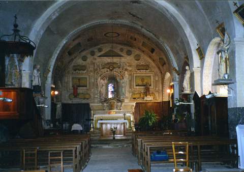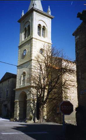 Ce bourg important du Moyen Âge est mentionné en 1281 dans une donation de l’abbé d’Aiguebelle au Comte de Provence. L’église paroissiale est un édifice composite qui porte témoignage d’une longue histoire. Le premier texte qui nous soit parvenu est un modeste legs d’un florin, le 19 mai 1484, pour la réparation de l’église. Dans la construction actuelle l’épaisseur des murs gouttereaux et la petite porte latérale sur le mur sud suggèrent des travaux exécutés au XIIIe ou XIVe s. dans la tradition romane. À Grignan le portail de la chapelle Saint Vincent offre une modénature semblable. En 1518 la porte de Réauville a été surmontée d’un campanile et de sa cloche détruits au XIXe siècle. Les guerres de Religion dans la deuxième moitié du XVIe s. causèrent de graves désordres à l’édifice. Lors de sa visite pastorale en 1601, l’évêque de Saint-Paul-Trois-Châteaux trouve l’église entièrement découverte et ordonne une remise en état complète. Ce sera l’œuvre des XVIIe et XVIIIe siècles. De nombreux travaux exécutés alors ont laissé leur trace dans les archives : couverture et charpente refaites, reprise des murs extérieurs et intérieurs et de 1eurs enduits, construction d’une voûte sur le chœur et sur la tribune installée au revers de la façade occidentale. Les nombreuses interventions du XIXe s. ont achevé de donner à l’église son aspect actuel : surélévation de la toiture consécutive à la construction d’une voûte sur la nef, suppression du passage par la porte latérale sud, création d’une importante déco ration peinte dans le chœur, destruction du portail ouest en 1862 et construction en 1871 du clocher-porche adossé à la façade. L’église a conservé son plan d’origine très simple, un rectangle de 25,17 m sur 10,97 m. Quatre arcs-diaphragmes délimitent les travées de la nef jusqu’à l’arc triomphal qui s’ouvre sur le sanctuaire. Ces arcs-diaphragmes, qui peuvent remonter à la première construction, retombent sur des tailloirs moulurés au sommet de pilastres carrés adossés aux murs gouttereaux. La séparation entre la nef et le chœur est marquée par deux marches circulaires en pierre de taille qui exhaussent ce chœur de 0,35 m. Une jolie balustrade en fer forgé, datée de 1671, achève de bien marquer la séparation. Elle est actuellement déposée. Le chœur représente, en raison de ses divers éléments décoratifs des XVIIe, XVIIIe et XIXe s. parfaitement amalgamés, la partie la plus intéressante de l’église. Le maître-autel en bois polychrome du XVIIIe s. est conservé. Un examen rapide de la décoration peinte de la voûte et des murs pourrait attribuer celle-ci à une même date. Il n’en est rien. Ces peintures sur toile marouflée, par erreur qualifiées de fresques, ont été exécutées au XIXe s. par des ateliers italiens qui venaient travailler en Savoie, Briançonnais, Embrunois. À Réauville, ils ont pu rencontrer l’influence baroque venue d’Avignon sensible dans les éléments purement décoratifs. La totalité des peintures, déposée pour être restaurée, est en cours d’inscription à l’Inventaire supplémentaire des Monuments historiques. Les autres interventions du XIXe s. et celles du XXe n’ont pas toutes été aussi bénéfiques. La Sauvegarde de l’Art Français, considérant la nécessité de protéger le décor peint du chœur, a accordé une aide de 50 000 F en 1999 pour aider à la réfection de la charpente et de la couverture.