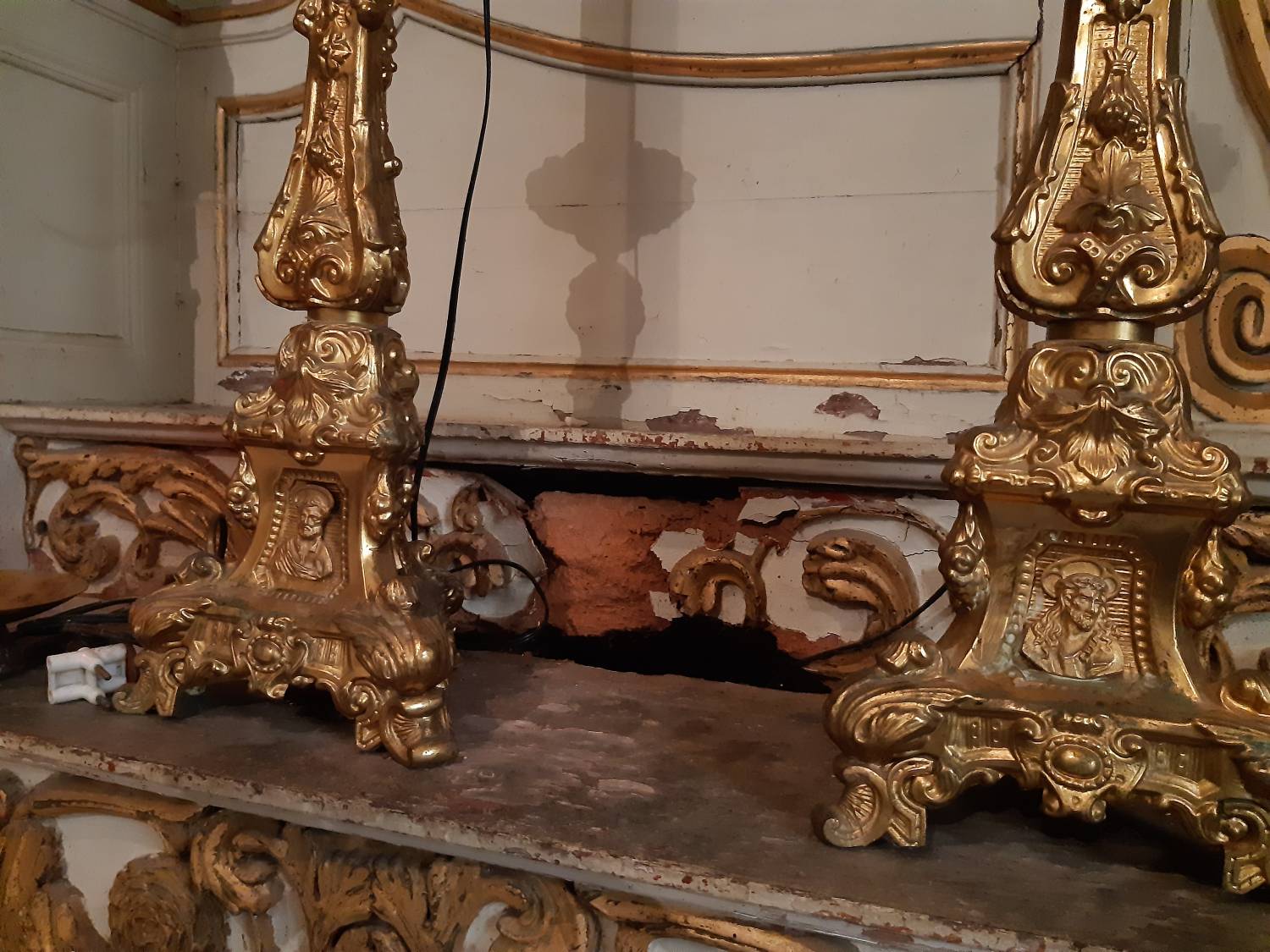 Les parties en bois sont vermoulues, en particulier les gradins de l’autel et le décor rapporté en bois refait. Les degrés ont été remplacés. Ce retable nécessite une restauration. En effet la traversée des siècles et les mauvaises conditions de conservation ont considérablement abîmé ce chef-d’œuvre.
