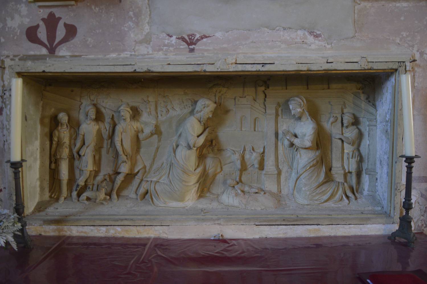 Les retables portent aujourd’hui les marques sévères du temps. Par endroits, la terre cuite est fissurée et la peinture craquelée. Ils ont également subi les maladroites interventions de restaurations antérieures. La mangeoire du Christ a par exemple été grossièrement bouchée par du mortier. Un nettoyage avec comblement des lacunes est donc nécessaire.