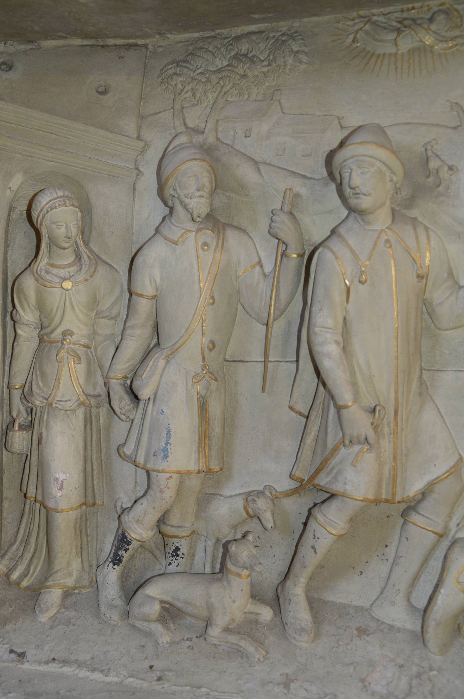 Enfin, la restauration des retables permettrait également d’effectuer une étude des différentes couches picturales présentes sur les groupes sculptés. En effet, les retables n’ont pas toujours arboré ce revêtement monochrome, qui n’a été apposé qu’à la fin du XIXèmesiècle. Les sculptures en terre cuite étaient systématiquement peintes, comme le montrent certaines traces de couleurs subsistant encore sur les retables.