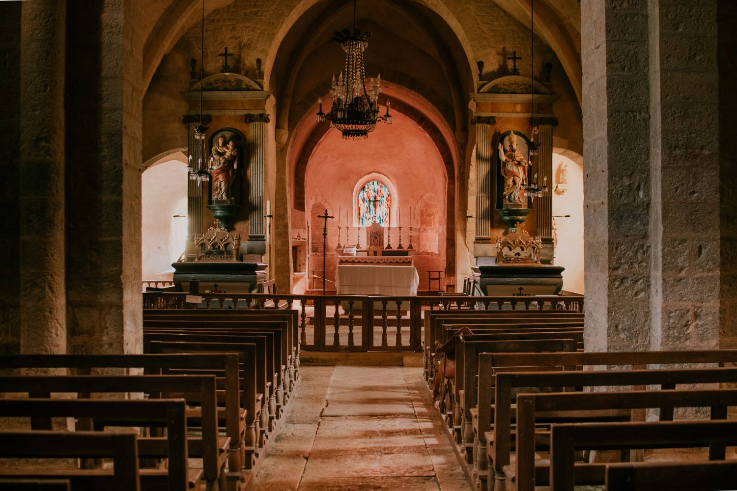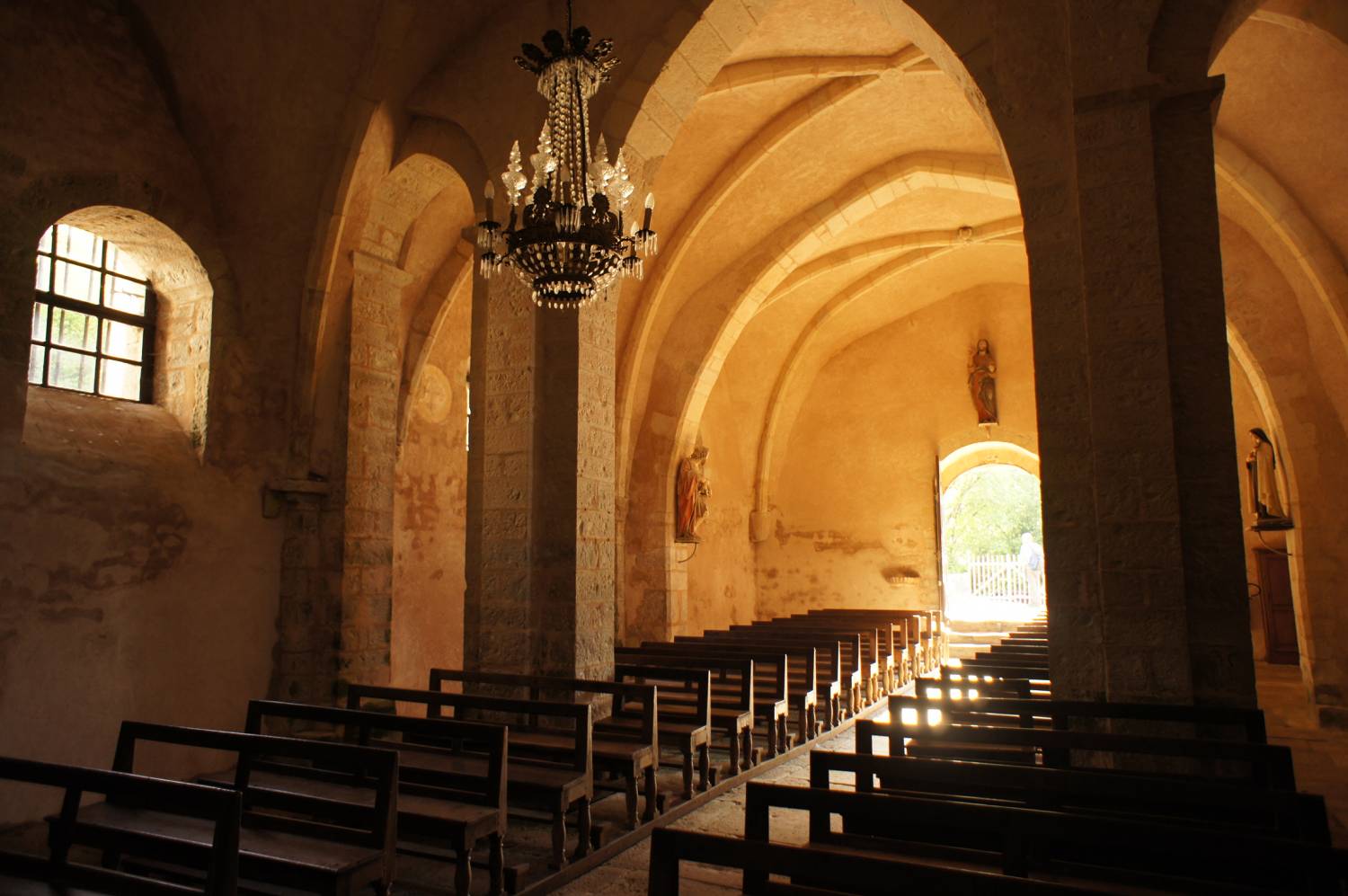 Vers la fin du XIIème siècle, l’idée d’une nef à trois vaisseaux, qui avait sans doute été celle des premiers constructeurs, fut reprise, mais en adoptant une solution économique et originale : trois arcatures transversales furent placées entre les deuxième et troisième travées et, à cette occasion, les murs furent surélevés.