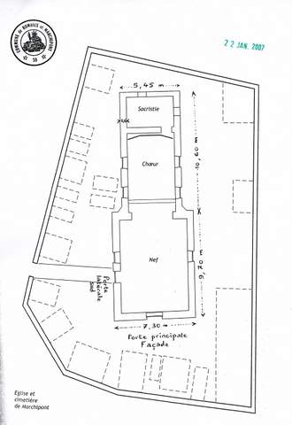 On peut ainsi penser que les restaurations – et reconstructions – intervenues au cours du XVIIe s. ont respecté la configuration d’ensemble de l’édifice. La première dut intervenir en 1622, la dernière en 1718, comme le rappelle l’inscription gravée sur la grande pierre bleue scellée sur le mur extérieur nord :