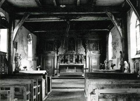 La commune ne compte que 315 habitants. L’église n’est ni classée, ni inscrite à l’inventaire supplémentaire des Monuments historiques. Elle abrite une très belle Vierge à l’Enfant, du xve s. Cette œuvre d’art de premier ordre fut construite avec la savoureuse rusticité d’une église de village au plan très simple, dominée par un petit clocher carré et une flèche d’ardoises. Un beau retable de bois richement sculpté et doré donne à l’autel toute sa valeur. L’intérieur de l’église présente un autre intérêt qu’il faut souligner. La charpente apparente est supportée par des poteaux de bois appliqués contre les murs. C’est un souvenir direct du temps où certains sanctuaires préromans de cette région avaient été construits en utilisant le bois pour seul matériau. C’est pourquoi la Sauvegarde de l’Art français a coopéré en 1976 et 1977 à la remise en état de l’ensemble de l’édifice, en accordant une subvention s’élevant à la somme de 40 000 F.