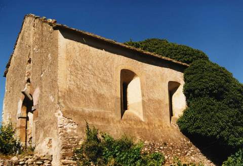 Le lieu-dit de Baraussan, dont le suffixe indique la présence d’une · villa romaine, témoignage corroboré par l’existence de dolia et la découverte de poteries sigillées, se trouve non loin d’une voie an tique. la chapelle est mentionnée en 940 « ecclesia Sancti Pontii de Baraussan » lors de la donation que fit Rodoald, évêque de Béziers, en faveur de l’abbaye bénédictine de Saint-Pons de Thomières. Placée sous le patronage de saint Poncian, ce petit édifice fort simple comprend une nef rectangulaire prolongée pat un chœur dont l’axe est légèrement en devers par rapport à celui de la nef. Le mur sud est percé d’une fenêtre ébrasée en plein cintre. Le chœur est séparé de la nef par un arc en plein cintre, forme architecturale qui se retrouve dans le voûtement. Les murs épais d’un mètre sont en moellons de pierre. Le mur goutterot nord est aveugle, alors qu’au sud il est percé de deux baies étroites fortement ébrasées à l’extérieur et à l’intérieur, et sans doute remaniées. Le mur ouest est percé d’un oculus au-dessus de la porte d’entrée, elle-même surmontée d’un arc en demi-cercle. De gros talus épaulent les murs à l’extérieur au niveau du sol. Tout l’édifice est couvert de lauzes. L’état de la maçonnerie et de la couverture envahies par une abondante végétation de lierre est alarmant. Afin de permettre la réfection d’une partie de la toiture affaissée en son centre, la Sauvegarde de l’Art Français a attribué une somme de 80 000 F à la commune de Roquebrun en 1990.